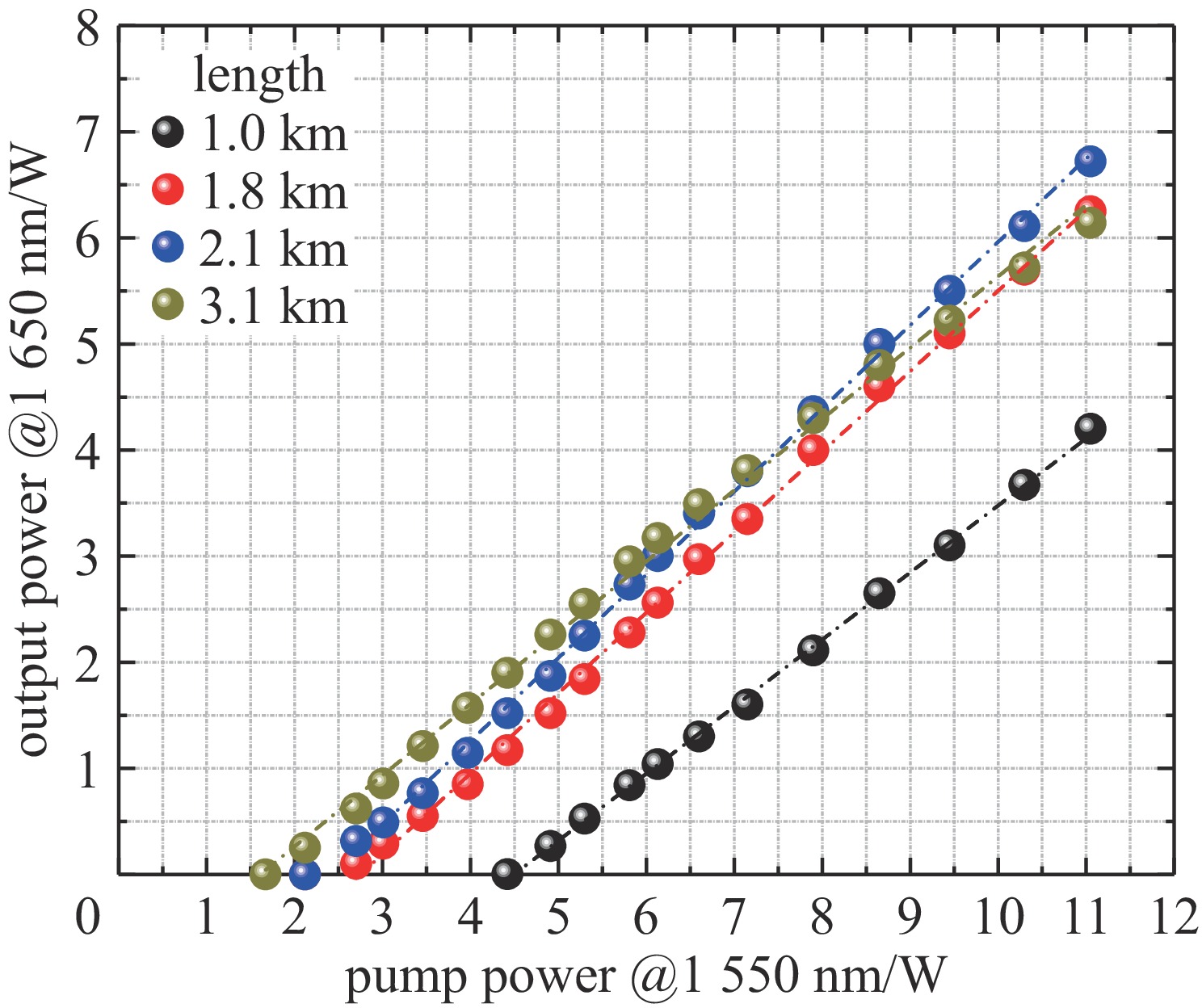 This paper employs a 1.55 μm fiber laser as the pump source and demonstrates U-band 1.65 μm Raman fiber lasers based on commercially available single-mode silica fiber. The effects of the Raman fiber length and the reflectivity of the output coupling fiber Bragg grating (OC-FBG) on the power conversion efficiency of the Raman laser were systematically investigated.