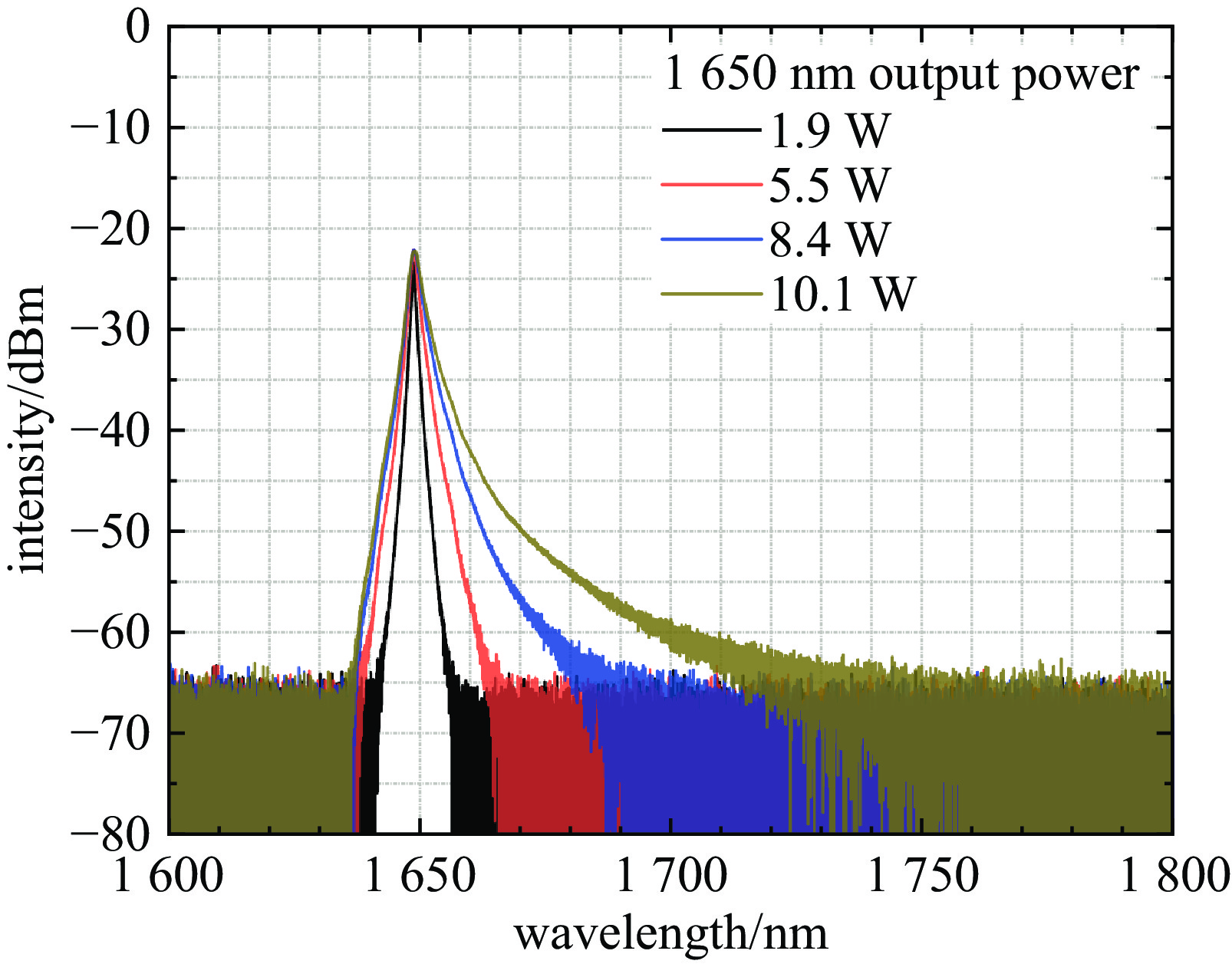 By selecting an OC-FBG with a low reflectivity of 15.7% and using a 2.1 km silica fiber as the Raman gain medium, a 1648.8 nm Raman laser output with a power of 10.1 W and a 3 dB bandwidth of 2.5 nm was achieved, corresponding to an optical-to-optical conversion efficiency of 65.2%.