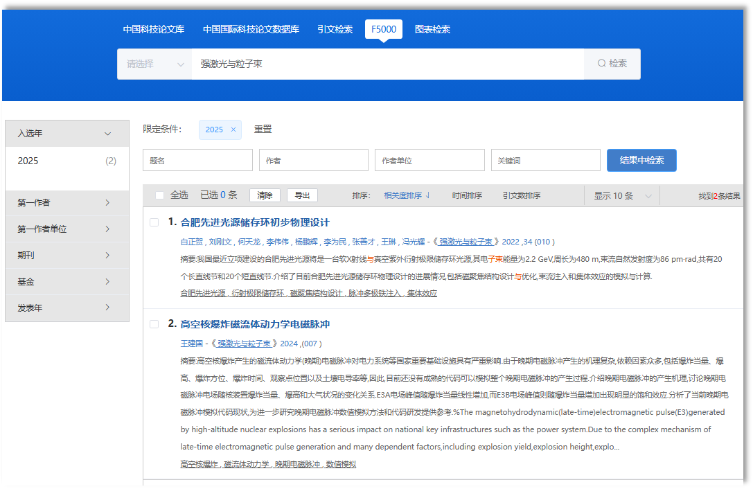 2023年首次入中国精品科技期刊,2025年度新增2篇F5000论文。
