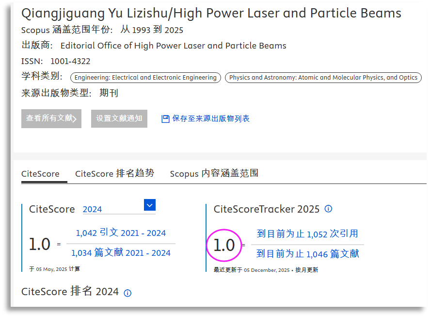 随着2025年度各大数据库学术期刊影响力指标公布,《强激光与粒子束》在多项权威评估中斩获佳绩,学术指标稳步提升,以硬核实力彰显在强激光与粒子束领域核心交流平台的行业地位!